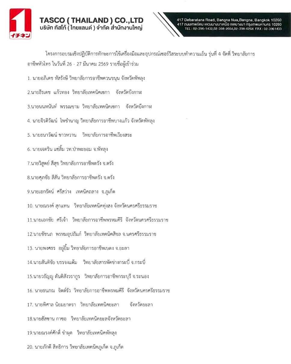 โครงการฝึกอบรมทักษะการใช้เครื่องมือและอุปกรณ์เซอร์วิสระบบทำความเย็น ครั้งที่4