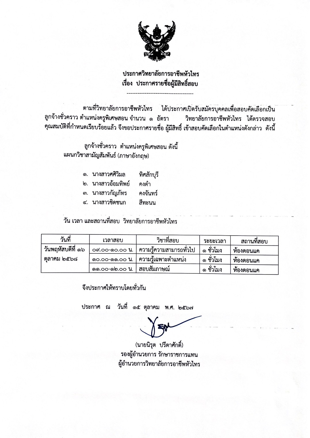 ประกาศรายชื่อผู้มีสิทธิ์สอบ ลูกจ้างชั่วคราว ตำแหน่งครูพิเศษสอน
