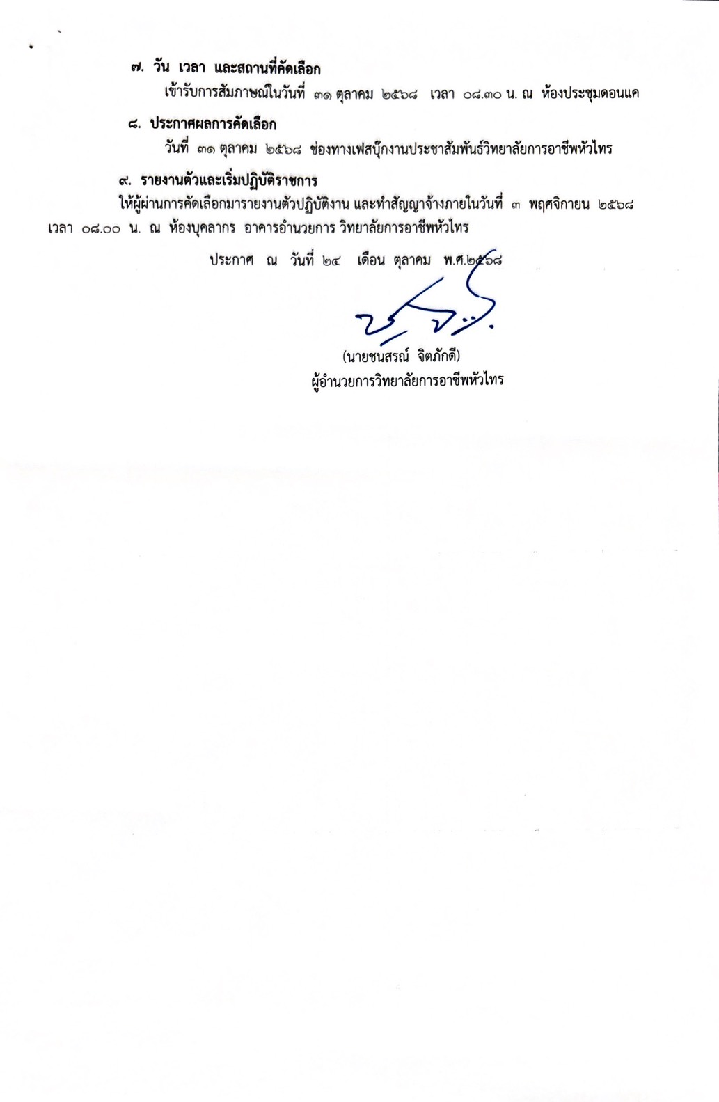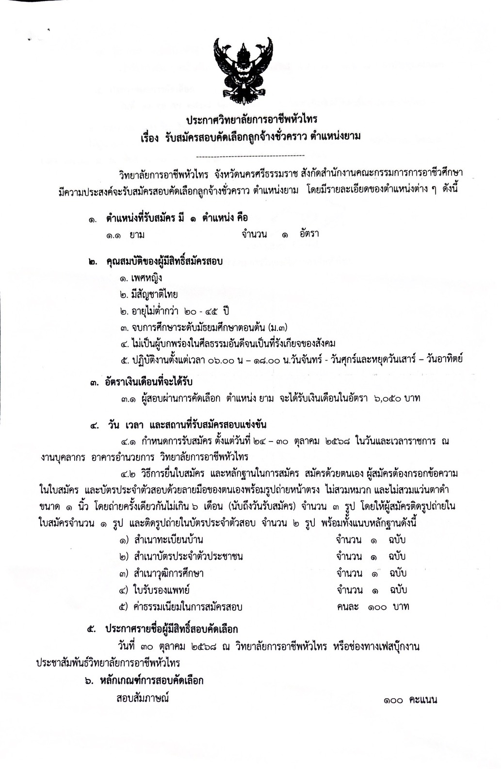 ประกาศวิทยาลัยการอาชีพหัวไทร รับสมัครสอบคัดเลือกลูกจ้างชั่วคราว ตำแหน่ง ยาม